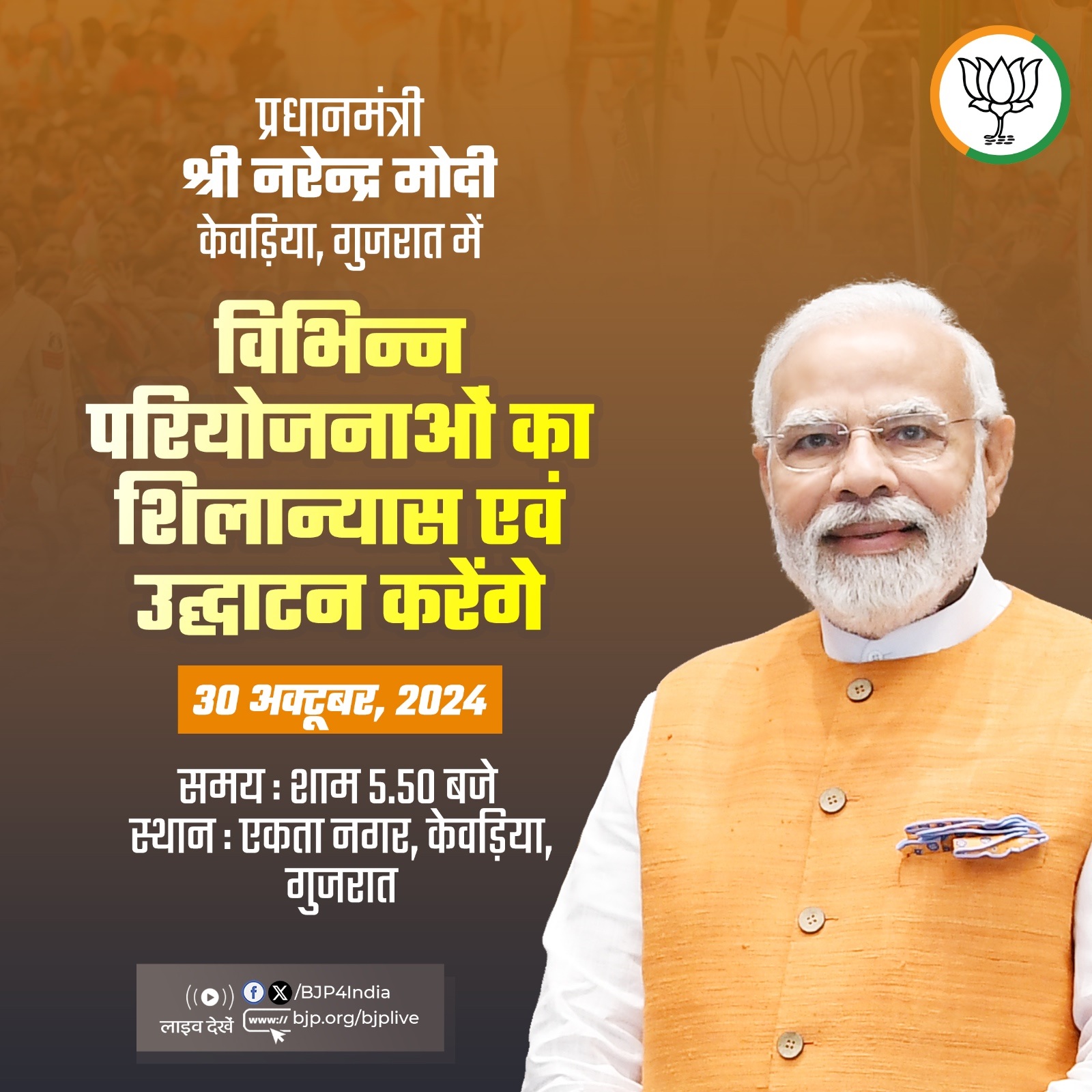 प्रधानमंत्री आज केवड़िया के एकता नगर में शाम करीब 5:30 बजे 280 करोड़