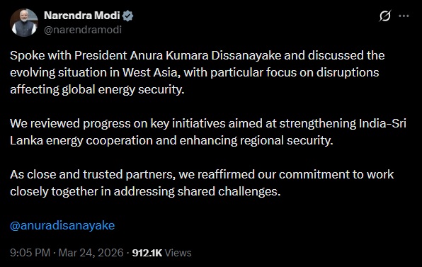 इस बातचीत को लेकर प्रधानमंत्री मोदी ने सोशल मीडिया साइट 'एक्स' पर पोस्ट भी किया। अपने पोस्ट में उन्होंने लिखा, भारत अपनी ‘नेबरहुड फर्स्ट’ नीति और ‘महासागर विजन’ के तहत क्षेत्रीय साझेदारों के साथ मिलकर साझा चुनौतियों का समाधान करने के लिए प्रतिबद्ध है।