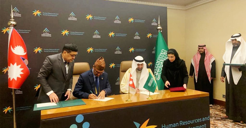 नेपाल और सऊदी अरब के बीच द्विपक्षीय श्रम समझौते पर हस्ताक्षर किए गए हैं। सऊदी अरब की राजधानी रियाद में सामान्य श्रमिकों के लिए सुरक्षित, व्यवस्थित और सम्मानजनक वैदेशिक रोजगार को बढ़ावा देने के उद्देश्य से यह समझौता संपन्न हुआ।